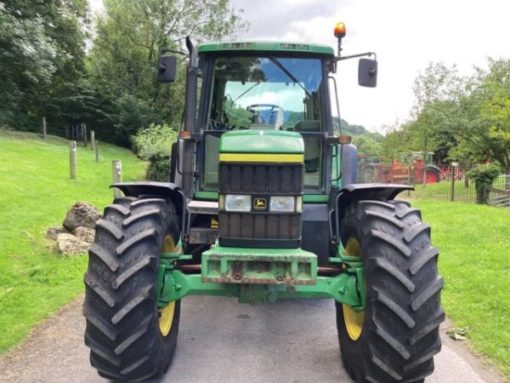 John Deere 6910 in very good condition. Year 2001, 11553 hours, 140HP, 40kph 20×20 Powerquad transmission, three manual spools, push out hitch, three speed PTO, air con, air seat, passenger seat. Kleber 420/85 R28 front tyres (50%) and 520/85 R38 rear tyres (60%). Two arable owners from new, tidy original example