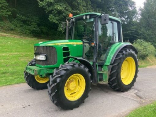 John Deere 6320 in very good condition. Year (February) 2002, 7301 hours, 100HP four cylinder turbo engine, 40kph 24×24 Powerquad transmission, three manual spools, push out hitch, three speed PTO, air con, passenger seat. On Goodyear 14.9 R24 front tyres and Goodyear 16.9 R38 rear tyres (30% allround). Clean and tidy tractor